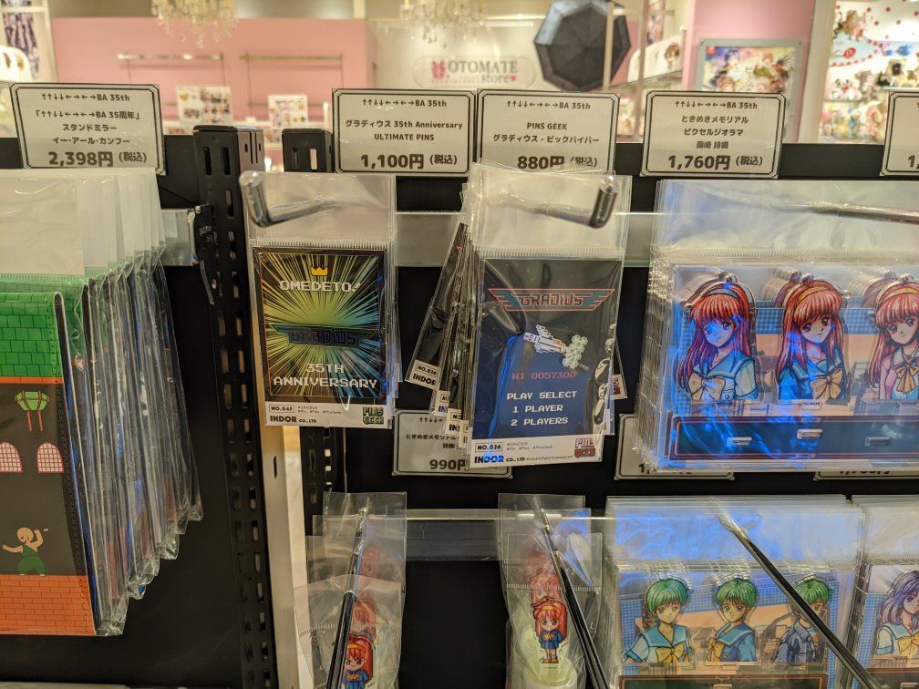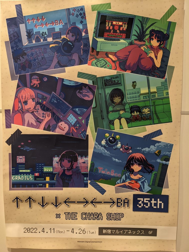 ↑↑↓↓←→←→BA 35th×THE CHARA SHOP 2022年4月29日2023年2月5日 argk 未分類 マルイアネックスによったら、偶然コナミの35周年を記念するショップが期間限定でやっていたので寄ってみた。 ちょっと前にグラディスのシャドーパネルとやらは通販で買っていたのだが、他は高くて何も買わずに退散。。もうちょっと安いのをお願いします。