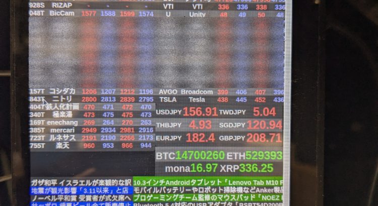 7インチのタッチディスプレイの背面にラズパイを付けて天気やニュース、株価や為替情報をこんな感じで常時表示させている。 元は楽天から貰ったAndroidスマホのホームに天気や株価のウィジェットを置いて常時表示させていたのだ…