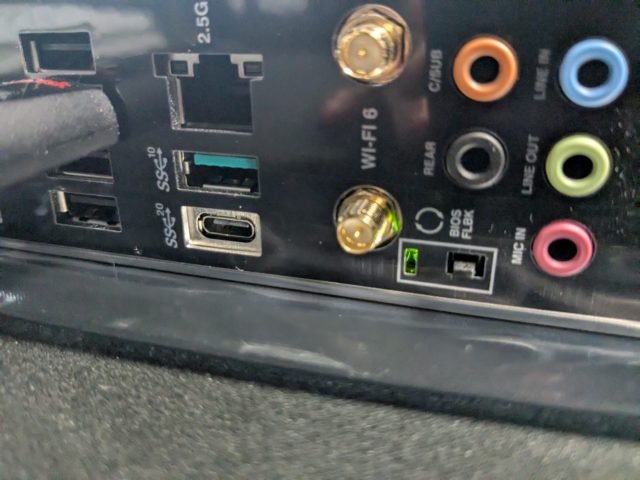 CPUだけ新しめなので、このマザーボードで使うにはBIOSをアップデートしないとならない。このマザーボードはCPUがなくてもアップデートできる機能があり、これがないとBIOSアップデートの為だけに旧CPUが必要になってしまう。んで、このCPUレスでのアップデートを行うにはCPUを付けない状態でUSBメモリから起動する必要があったのだが、先にCPUを付けてしまっていた。グリスを塗ったCPUを剥がして行う事にはめになった。