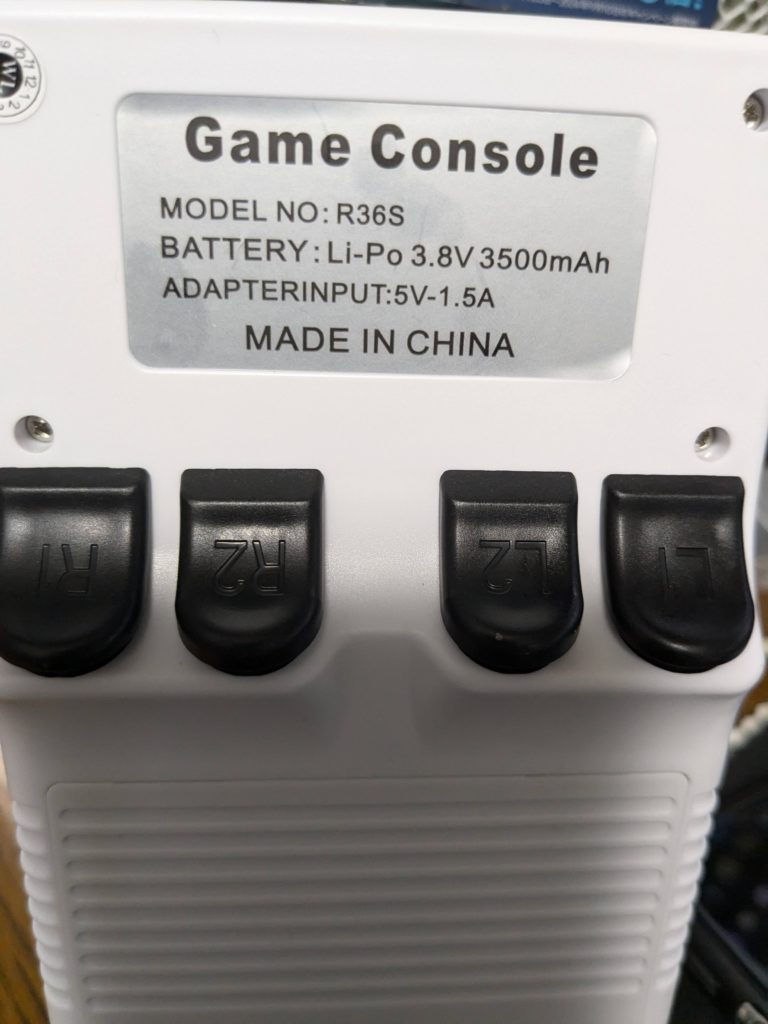この機種は背面シールにもR36Sと堂々とプリントされていて、起動画面にもR36Sと出るし、筐体の作りも本物そっくりなので、他の機種だと知らずに使い続けている人はかなりいそうである。私のようにARKOSの最新板を入れようとして入らない辺りで気づく人が多そうではあるが。