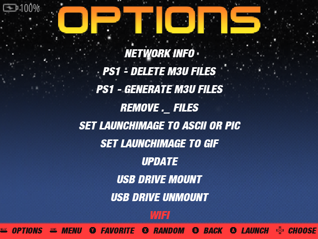 wifiドングルを接続し、Options > WIFI を選択