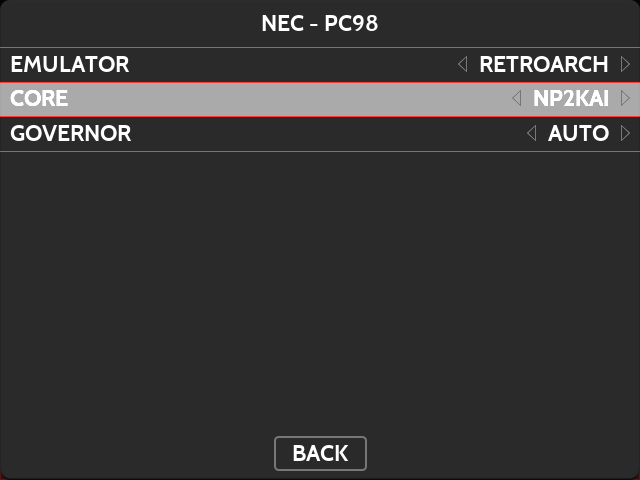 STARTボタン > EMULATOR SETTINGS > NEC – PC98 > CORE > NP2KAI