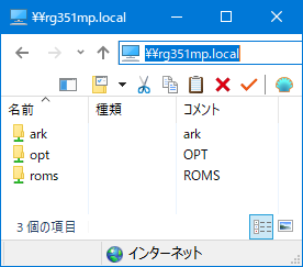 Windowsエクスプローラーのアドレスバーに\\rg351mp.local2を入力するとR36Sの共有ディレクトリが見えるので、ファイルの転送を行なっていく。